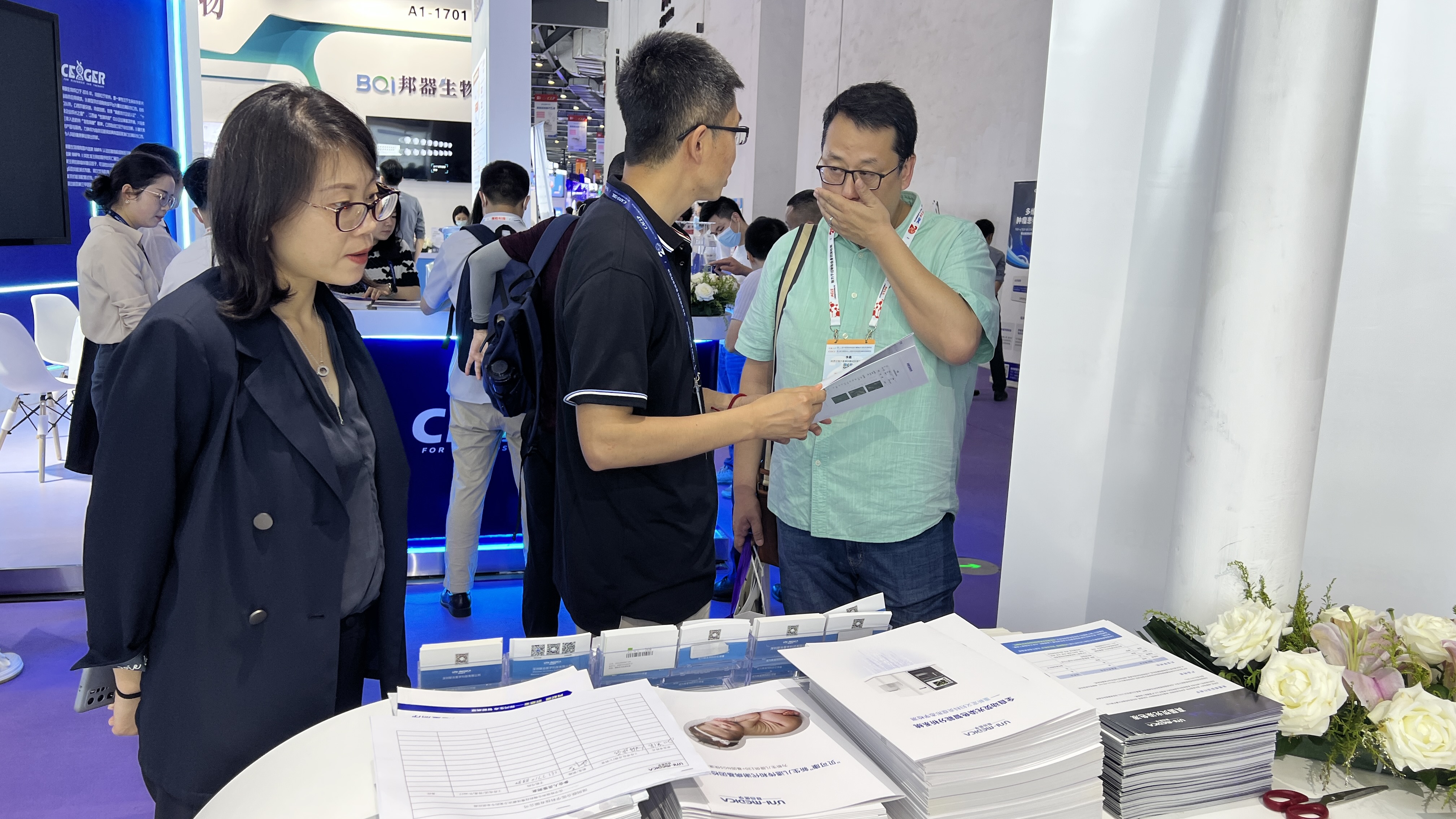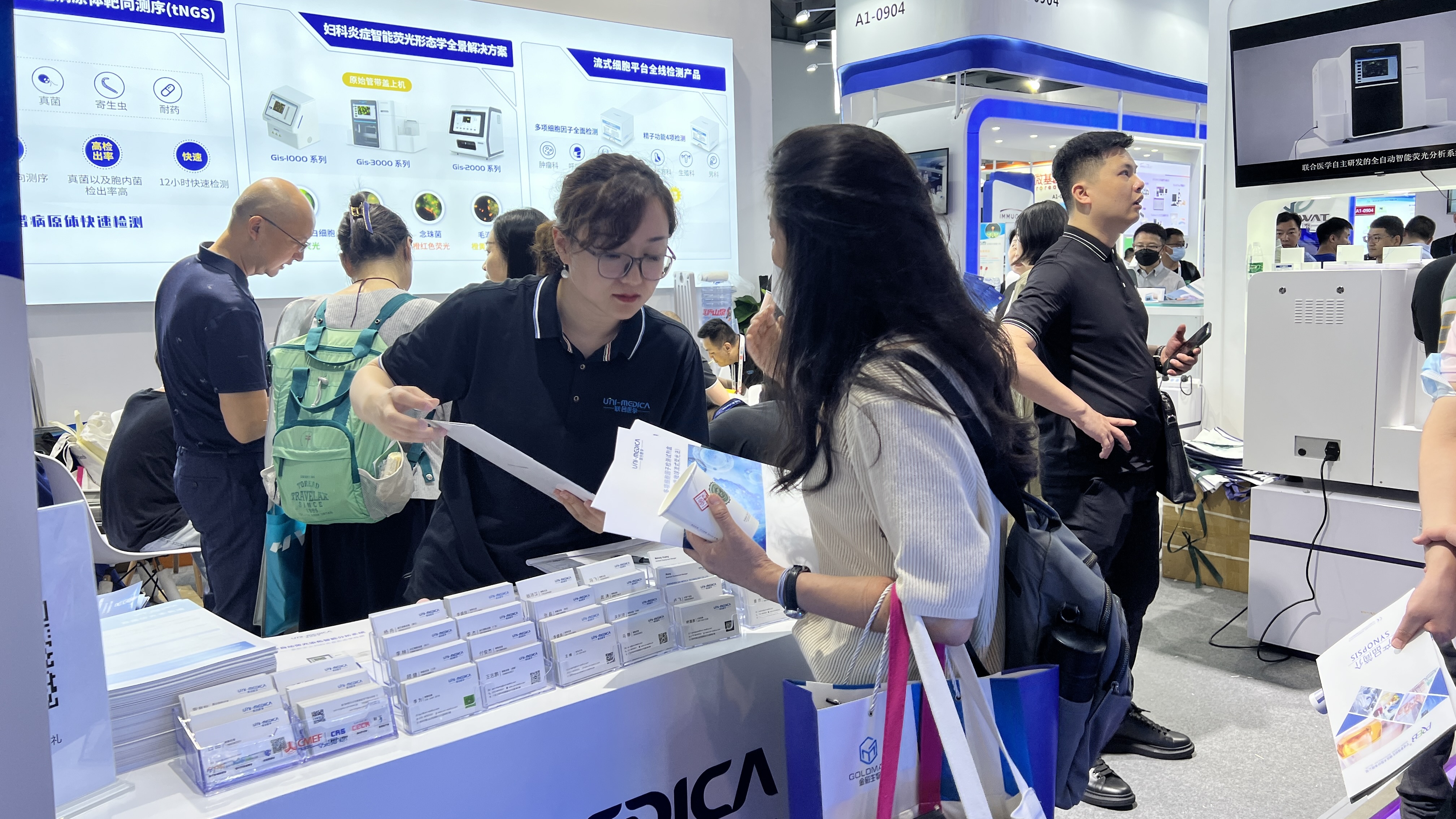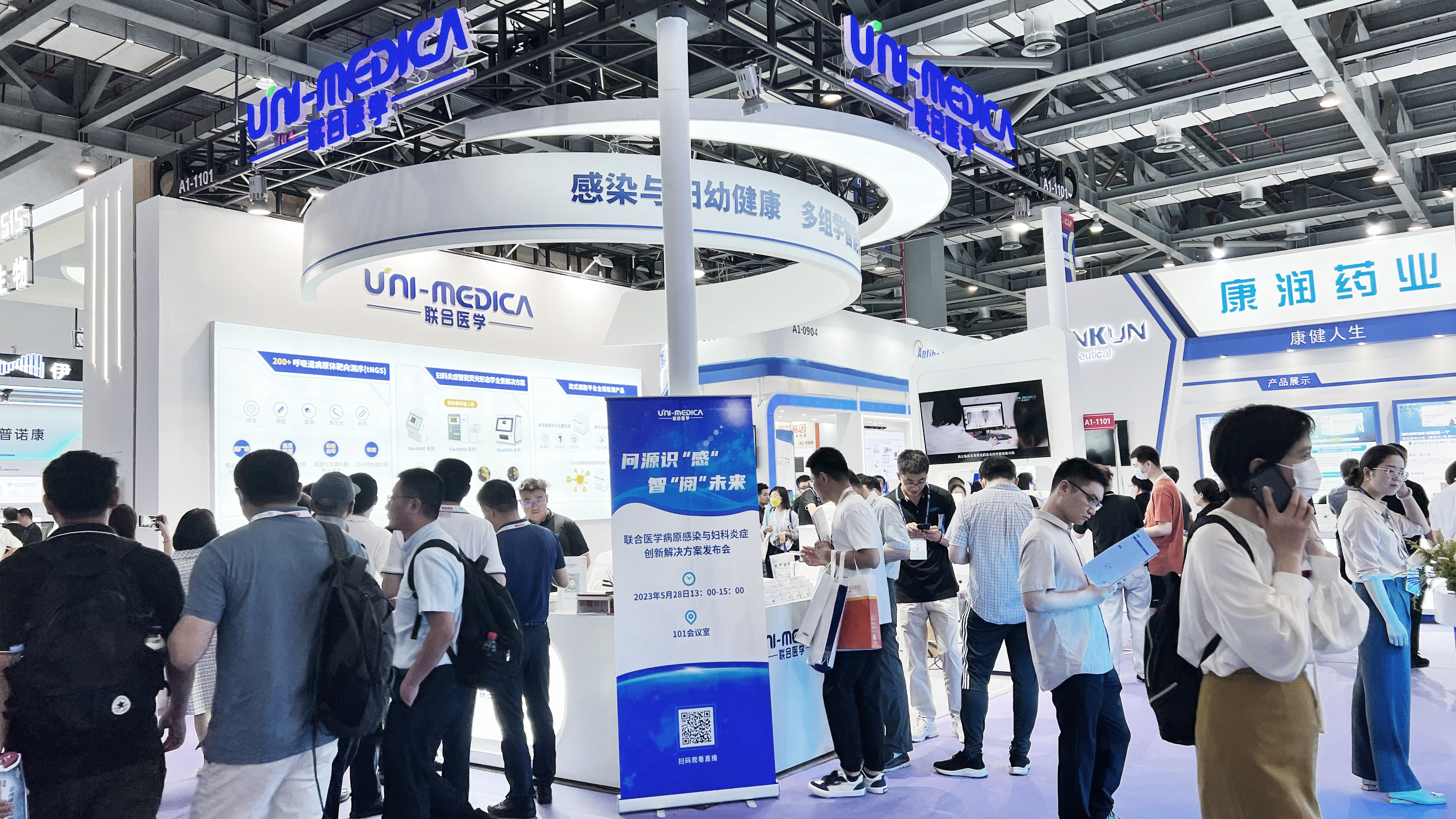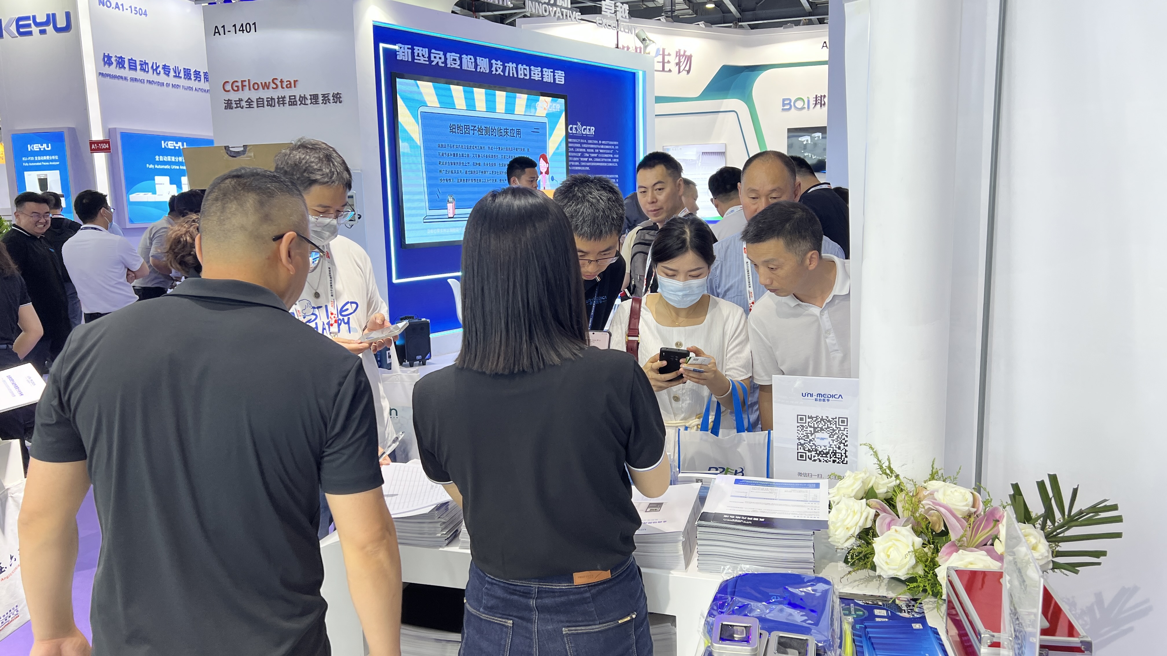 展會第一天,聯(lián)合醫(yī)學(xué)“問源‘識’感,智‘閱’未來”專題衛(wèi)星會圓滿召開;展臺人氣爆棚,來訪者絡(luò)繹不絕。